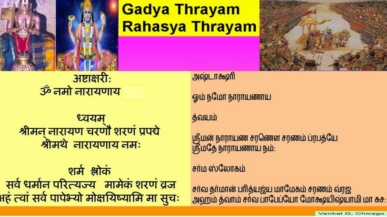 Dwayam and Charma Slokam precede chanting of Sri Ranga Gadyam followed by "Kayena